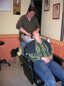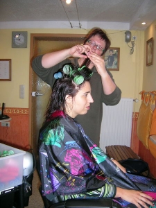 Die erste Station war der Frisörtermin bei Ute für uns beide.