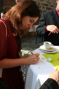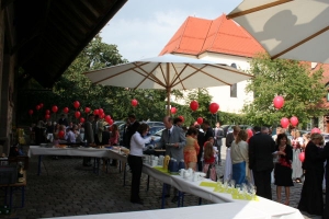 Die Zeremonie im Standesamt umrahmten wir im Eintopf mit zwei Liedern. Am Abend gab es unter Olis und Judiths Moderation ein kleines Ausscheidungstanspielmitbesen, bei dem es viele Preise zu gewinnen gab.