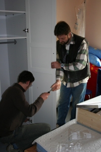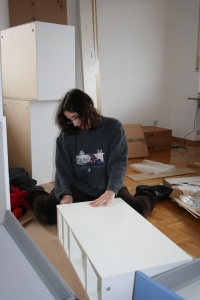 Das hat mit dem Packen angefangen, ging über das Renovieren (unsere erste eigene Küche, die erste eigene Wand und das erste Mal tapezieren), einen Vorabumzug der Bücher in die Garage, den eigentlichen Umzug, IKEA-Gruppeneinkauf und anschließendem Aufbau-bis-tief-in-die-Nacht bis hin zum Teppichlegen im neuen Kinderzimmer.
